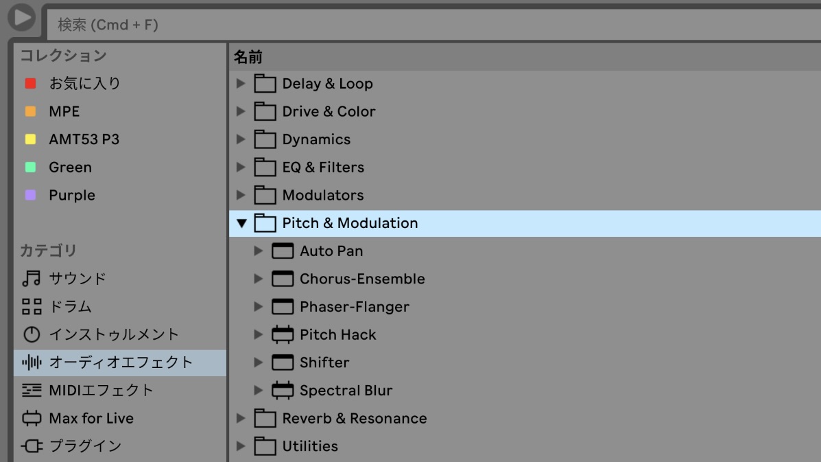 個人的には分かりづらかったオーディオエフェクトのフォルダ分け