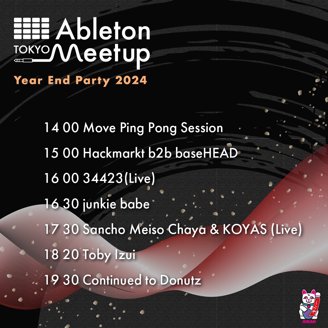 今年も大変お世話になりました。いよいよ明日今年最後のイベントAbleton Meetup Tokyo Year End Party 2024が開催されます。今回は普段のアカデミックな感じではなく忘年会的なパーティーになります。認定トレーナーや他スタッフともゆっくり話せる機会になりますのでお気軽にご参加ください。